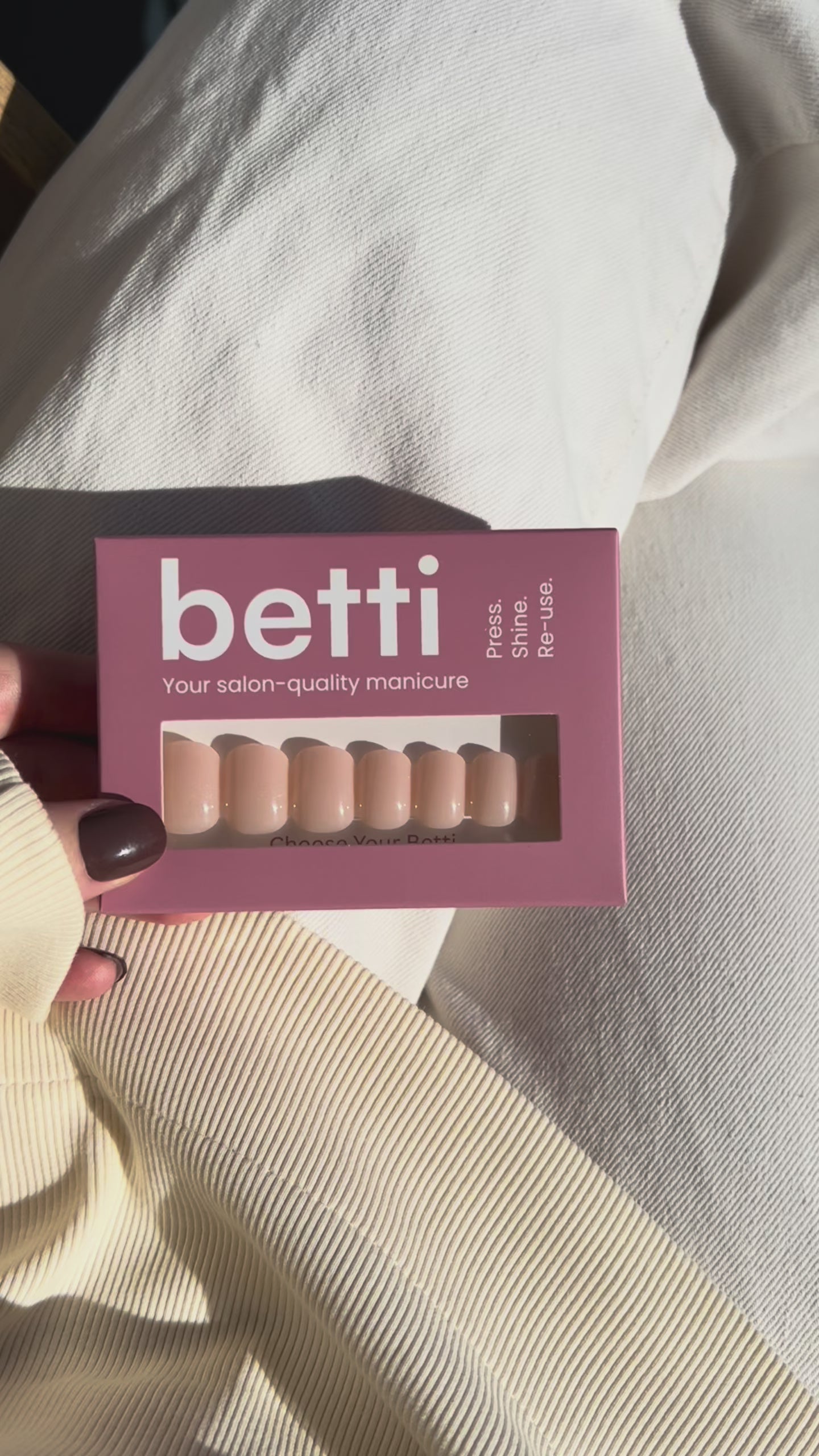 Nagellijm: je draagt Bettis gemiddeld tot 2 weken en ze zitten extra stevig, maar verwijderen kost meestal wat meer tijd. Hergebruik raden we niet aan, omdat er na het verwijderen vaak lijmrestjes op de Betti achterblijven, waardoor ze er minder “nieuw” uitzien (sommige klanten vijlen de lijm weg en gebruiken ze nog een keer).